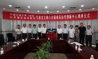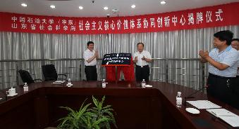 7月21日上午,bat365在线中国官网登录入口(华东)和山东省社会科学院联合组建的“社会主义核心价值体系协同创新中心”举行揭牌仪式,365官网副校长李兆敏教授与山东省社科院党委书记唐洲雁教授共同为中心揭牌。仪式由bat365在线中国官网登录入口司江伟教授主持,学院部分教师和学生代表参加会议。