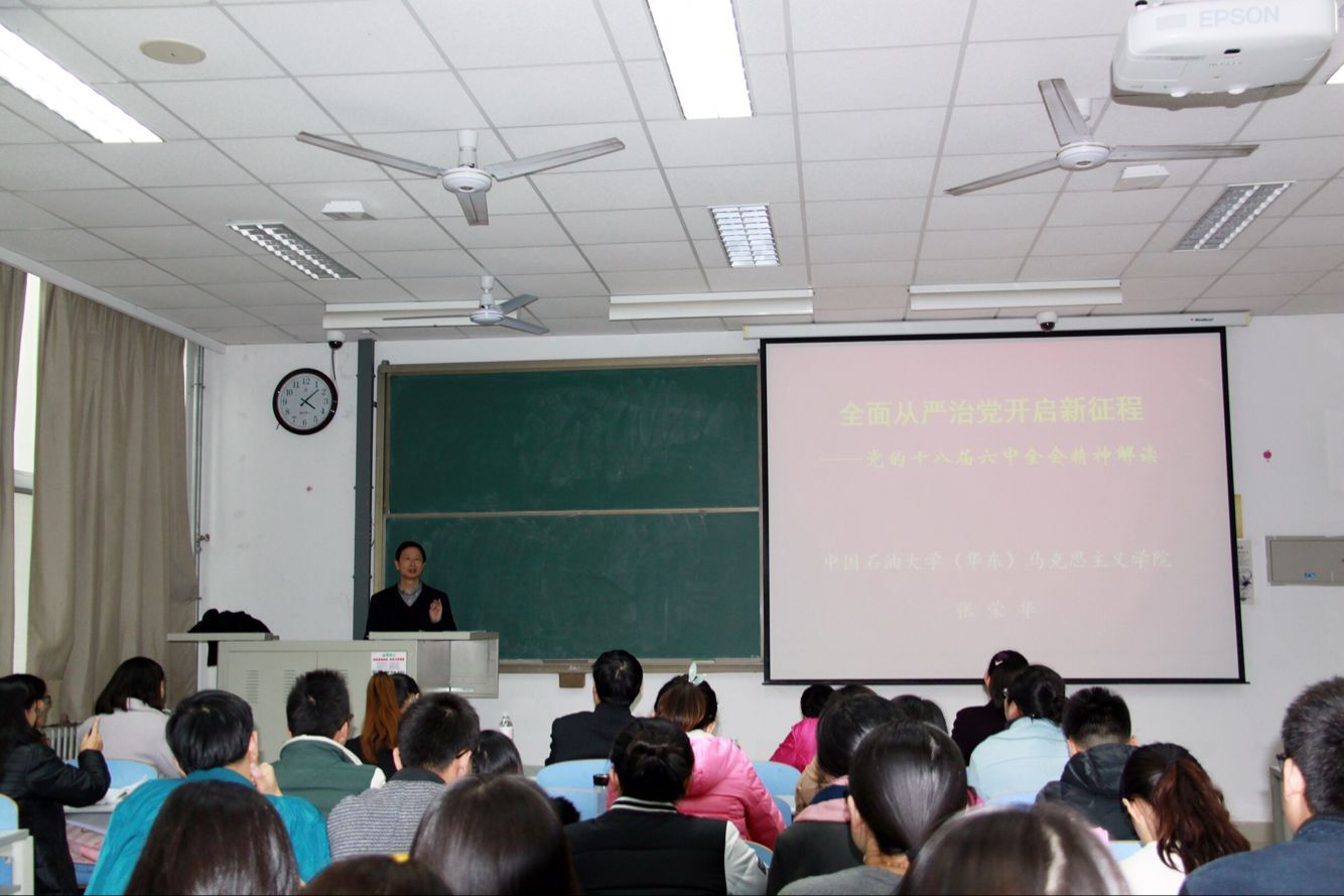 张荣华教授以“全面从严治党开启新征程——党的十八届六中全会精神解读”为题,结合国内权威学者的解读,就《中国共产党第十八届中央委员会第六次全体会议公报》、《关于新形势下党内政治生活的若干准则》和《中国共产党党内监督条例》进行了完整系统的解读。在一个半小时的讲座中,张荣华教授围绕党的十八届六中全会取得的四大成果、全会专题研究全面从严治党问题的三个必要性、正式提出“以习近平同志为核心的党中央”的三个重要性、《若干准则》的新提法和新亮点、《条例》的新提法和新亮点等五个方面的内容为在场党员进行了全面客观的分析。