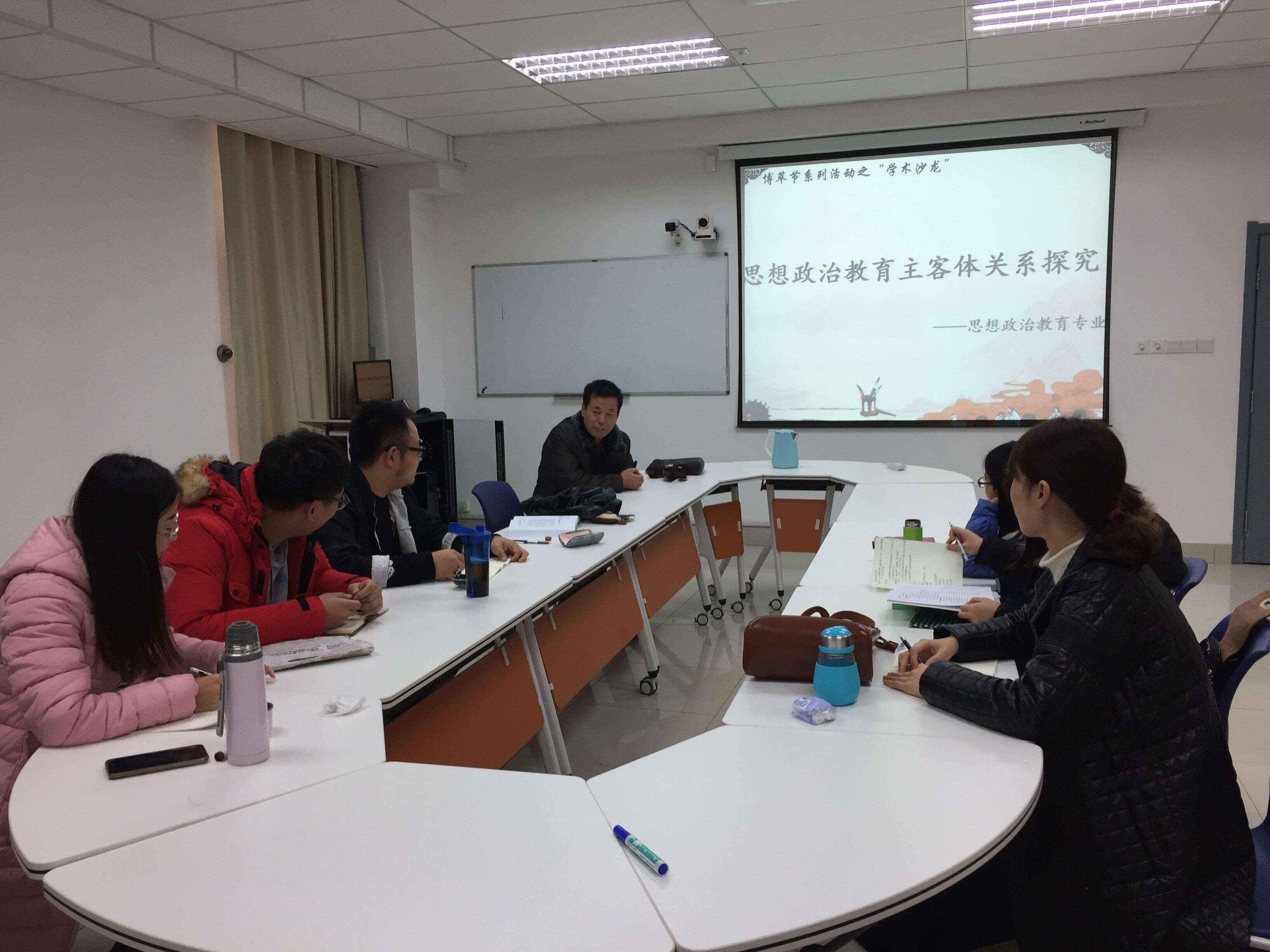 在本次学术沙龙中,各专业主讲人分别围绕“高等教育效率与公平的关系和慕课的使用”(高教教育学)、“应用伦理”(哲学)、“邓小平南方谈话”(马克思主义中国化)、“思想政治教育主客体关系探究”(思想政治教育学)、和“研究生论文写作难题”(政治学)的主题对其内容进行阐释,随后同学们就论坛主题踊跃阐述自己观点,最后,各专业老师对本次硕士沙龙主题进行讲解,并围绕所讲内容、方向思路进行点评。
