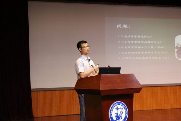 专题教学由365官网bat365在线中国官网登录入口青年教师、毕业于吉林大学的郎帅博士主讲,主题为“中美经贸摩擦:起因、实质与中国的立场”。郎帅博士以专业的视角深入浅出地分析了中美贸易战的背景、现状及未来发展趋向,当谈到大学生在这场贸易战中应该做什么时,他指出我们应坚定“四个自信”、强化“四个意识”、正确分析和解读经贸摩擦、不信谣不造谣不传谣。郎帅博士深厚精湛的专业功底、幽默风趣的讲课风格,赢得了现场频频的掌声,让同学们深切地体验到了“形势与政策”课程的魅力。专题教学结束后,来自理学院应用物理专业的2018级本科新生李骁同学由衷感叹道:“这门课程对我来说真的很有帮助,是一扇指导我们正确认识国内外大势的‘窗户’,我会珍惜学校的宝贵教学资源,在这门课程中不断提升自己。”