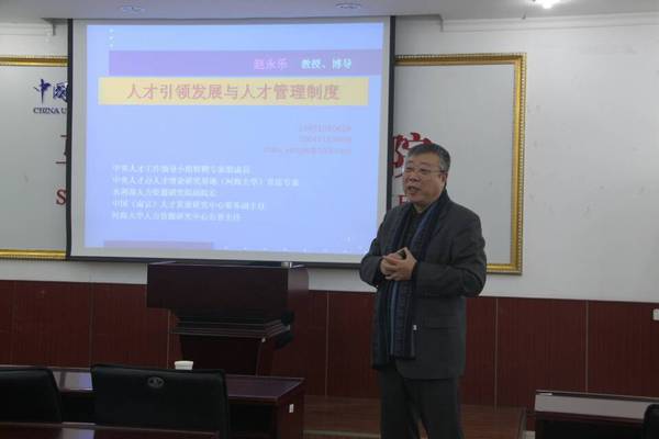 赵永乐教授以独特的视角对新时代人才问题进行了分析讲解,不仅开拓了学生的创造性思维,为大家日后从事“人才问题”研究提供了指导性建议;同时,启发了学生们的实践意识,鼓励大家运用创新性思维去解决问题。短短两个小时,大家就被赵永乐教授缜密的学术思想所征服,教授严谨的治学态度和独特的学术见解让大家受益匪浅。
