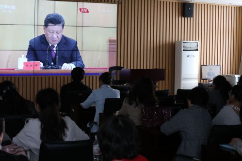 4月30日上午10点30分,纪念五四运动100周年大会在北京人民大会堂隆重举行。中共中央总书记、国家主席、中央军委主席习近平出席大会并发表重要讲话。365官网全体师生在学院会议室457集中收看会议实况直播,一起回顾五四运动100年的创新历程、分享五四运动100年的辉煌成就,共同展望中华民族伟大复兴中国梦的美好未来。