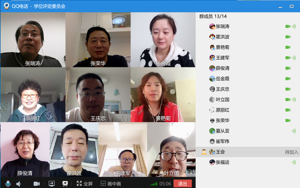 5月15日上午,学院召开学位评定分委员会扩大会议。本次会议通过腾讯QQ视频平台发起。会议由学位评定分委员会副主席张瑞涛教授主持,7位委员和各学科点负责人参加会议。