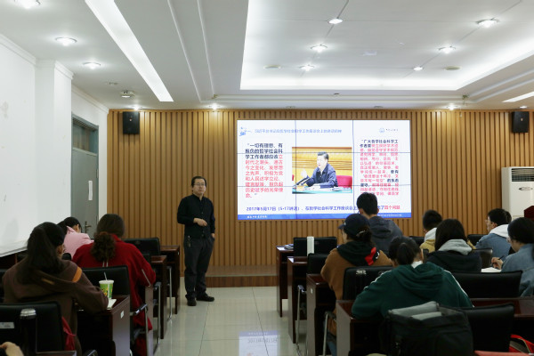 在讲座上,张瑞涛首先带领同学们认真学习了习近平总书记在哲学社会科学工作座谈会上的重要讲话,领会了必须坚持马克思主义在我国哲学社会科学领域的指导地位,必须加强和改善党对哲学社会科学的领导,贯彻百花齐放、百家争鸣的会议精神,从宏观上把握了人文社科类研究生的历史使命。随后,张瑞涛讲到研究生学术研究的三重使命———立学之本,学术研究当诚信;为学之命,学术研究要创新;治学之范,学术研究需规范。并结合自身经历勉励同学们在读研过程注重真、新、范,做一个时代需要的、合格的研究生。最后,张瑞涛强调要正确处理研究生学术生活的三个关系,即研究生和导师的关系,研究生与学术资料的关系,研究生和日常生活的关系,并给予各位研究生许多真诚的建议。