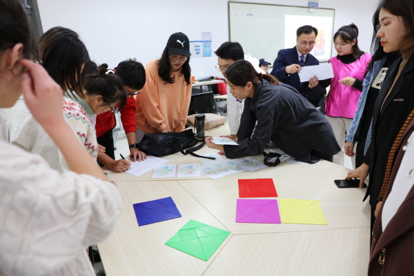 本期“成长沙龙”活动由系列卓越领导力训练项目组成,共分为四个环节。首先,吕云涛老师通过破冰小游戏“方言开火车”,活跃了活动气氛,使同学们投入到放松的状态中。其次,吕云涛老师引导同学们采用肢体交流的方式,通过生日月份进行排序,考验同学们的领导组织能力。由此引出此次“成长沙龙”活动的主题,即领导力与团队管理,并告诫同学们“要做一棵树,树是我们每个人成长的标准和方向,不仅自己的人生是一道亮丽的风景,更要勇于担当成为国家的栋梁之才!”接着,吕老师组织同学们开展“管理七巧板”游戏,全体同学被分为七组,并分别给予不同的任务,引导同学们感悟团队合作与领导力的重要性。吕老师指出,“领导力本质上就是影响力,领导力就是影响他人为实现组织目标而奋斗的能力”。活动最后,吕老师带领同学们进行心灵对话活动,并指出团队构建首先应从心与心的对话开始,