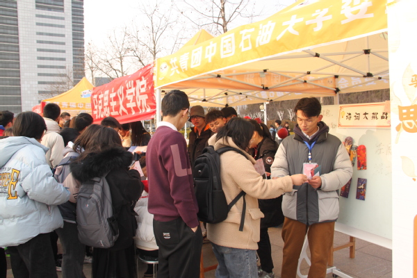 bat365在线中国官网登录入口此次游园会活动“诗词大挑战”包含“诗词答题挑战”、“诗词书法比拼”、“诗词朗诵展示”三个环节。参与活动的同学们展现出极大的热情,在马院摊位前排起了长队。参与者们通过抽取展板上的红包参与诗词答题,同学们展示出自己强大的诗词积累量,并获得了精美盲盒礼物。此外还有诗词书法比拼、诗词朗诵展示等多项小游戏。在游戏与互动中传承诗歌文化、彰显语言魅力、品味文化经典。活动项目生动有趣,歌声、欢乐声充满整个校园。
