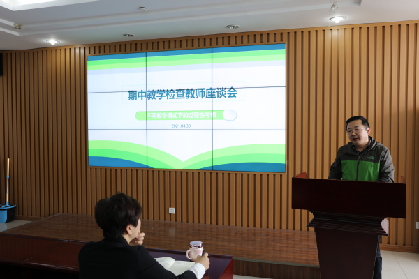 2021年4月30日上午9时,365官网组织全体教师在文理楼457会议室,针对期中教学专项检查结果,围绕不同教学模式下的过程性考核等问题开展座谈交流。座谈会由岳金霞副院长主持,学校党委教师工作部、教务处部门代表全程参与。