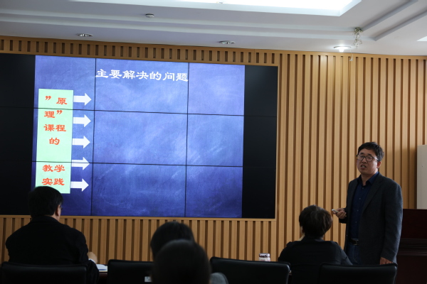 此次教师座谈会以365官网走在教研教改前列的《马克思主义基本原理》课程为例,由原理教研室的4位教师代表对其教学模式中的教学设计、课程实施与过程考核分别进行介绍,并在情况汇报完毕后对学院其他老师的质询做出回应。