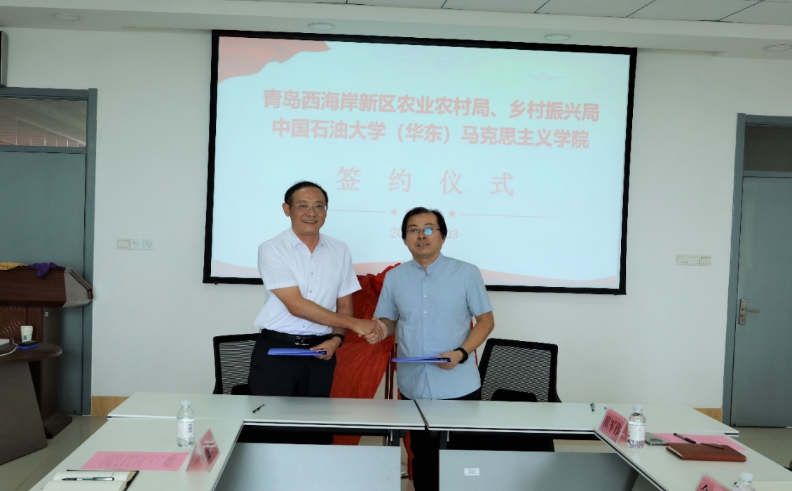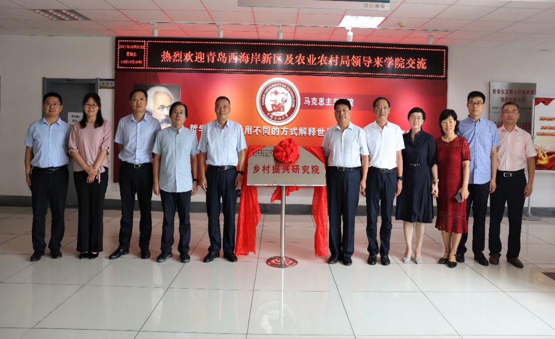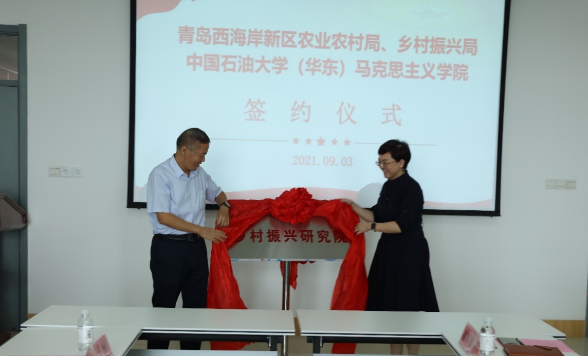随后,张瑞涛院长与青岛西海岸新区农业农村局、乡村振兴局局长王卫青签署合作协议;365官网文科建设处副处长金玉洁与青岛西海岸新区分管领导刘记军代表双方为“乡村振兴研究院”揭牌。