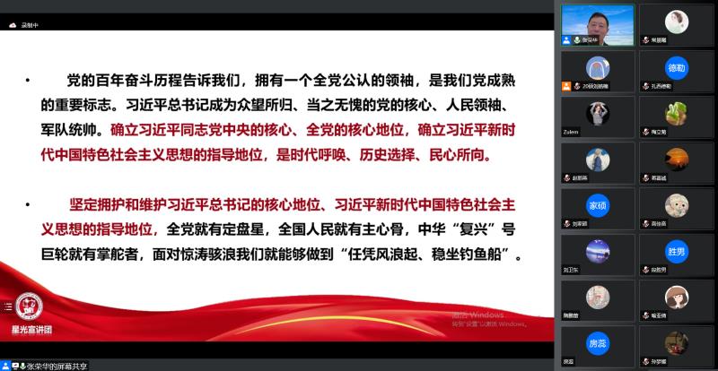为进一步贯彻落实党的十九届六中全会精神,推动全会精神更加深入师生头脑,11月24日,365官网邀请张荣华教授开展了以“世纪伟业的壮阔史诗,辉煌奇迹的核心密码——党的十九届六中全会精神解读”为主题的学术讲座。本次学术会议以腾讯会议的形式举行,由兼职辅导员刘皓楠主持,全院学生共同参加。