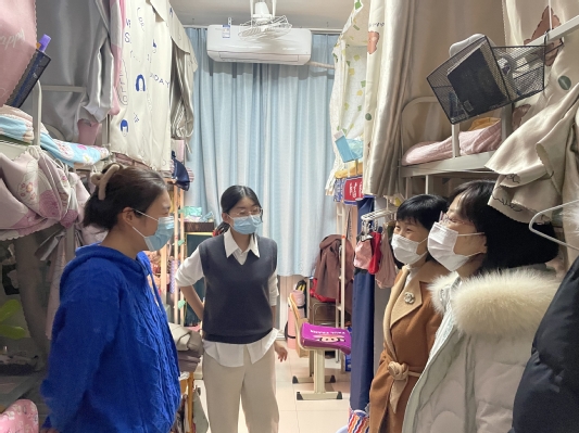 为落实防疫政策,学院领导深入学生寝室,走进学生课堂,了解学生所需,察看学生上课情况,将防疫工作落实到位,同时保障线上教学的顺利开展。