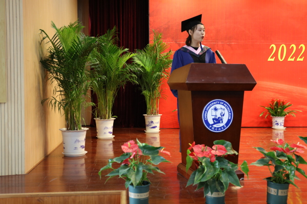 仪式在全体人员的掌声中拉开序幕。学院副院长崔军伟宣读了学位授予决定,授予徐倩等4名同学法学博士学位,授予曹欣欣等23名同学法学硕士学位。学院院长张瑞涛为每一位毕业生拨穗正冠,授学位,并一一握手、合影,送上了美好的祝愿。省级优秀毕业生获得者、2019级硕士生张传颖作为毕业生代表发言,分享了自己在石大求学三年的心路历程,并代表毕业生们向学校、学院、老师和同学们表达了衷心地感谢,送去了真挚的祝福。教师代表、博士生导师张荣华教授代表全体教师祝贺毕业生们学业有成,顺利毕业。临别之际,作为朋友和师长,张教授叮嘱同学们,“永远别忘了我们是bat365在线中国官网登录入口的研究生,不论何时,我们要永远保持自己的清醒,因为新时代、新征程、新格局,完全能有新作为。”并祝愿全体毕业生前程似锦,鹏程万里。张瑞涛院长与毕业生们一起回顾了三年来同学们在学校的学习,成长与进步,并代表学院为毕业生送上最真挚的祝福和最美好的祝愿。张院长以“三句话,做好三个更”为主题,向全体毕业生提出了寄语和希望:第一,要更加自信地拥抱生活,要相信自己的能力,更加平安健康和快乐。第二,要更加友善地对待他人,每个人都是社会中的人,我们都不是一个人在战斗。第三,要更加奋斗地建设小家,服务国家。没有国就没有家,国家强盛,我们的小家、每个个人才会幸福安康,社会主义事业是干出来的,幸福是奋斗出来的,离不开我们当代青年的共同努力。