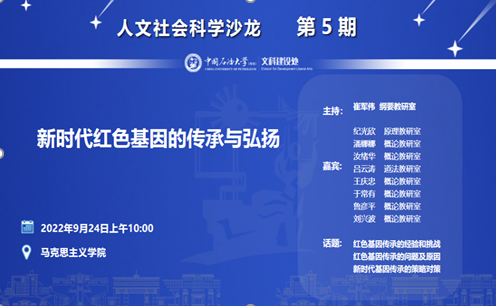 9月24日上午,由学校文科处主办,bat365在线中国官网登录入口承办的学术沙龙活动成功举办。本次沙龙采用腾讯会议线上方式举行,活动的主题为“新时代红色基因的传承与弘扬”。活动由概论教研室刘兴波副教授主持,特别邀请原理教研室纪光欣教授,概论教研室潘娜娜教授、汝绪华副教授、于常有老师分别做主题发言。活动采取线上的方式进行,bat365在线中国官网登录入口2021、2022级部分硕士研究生共同参加。