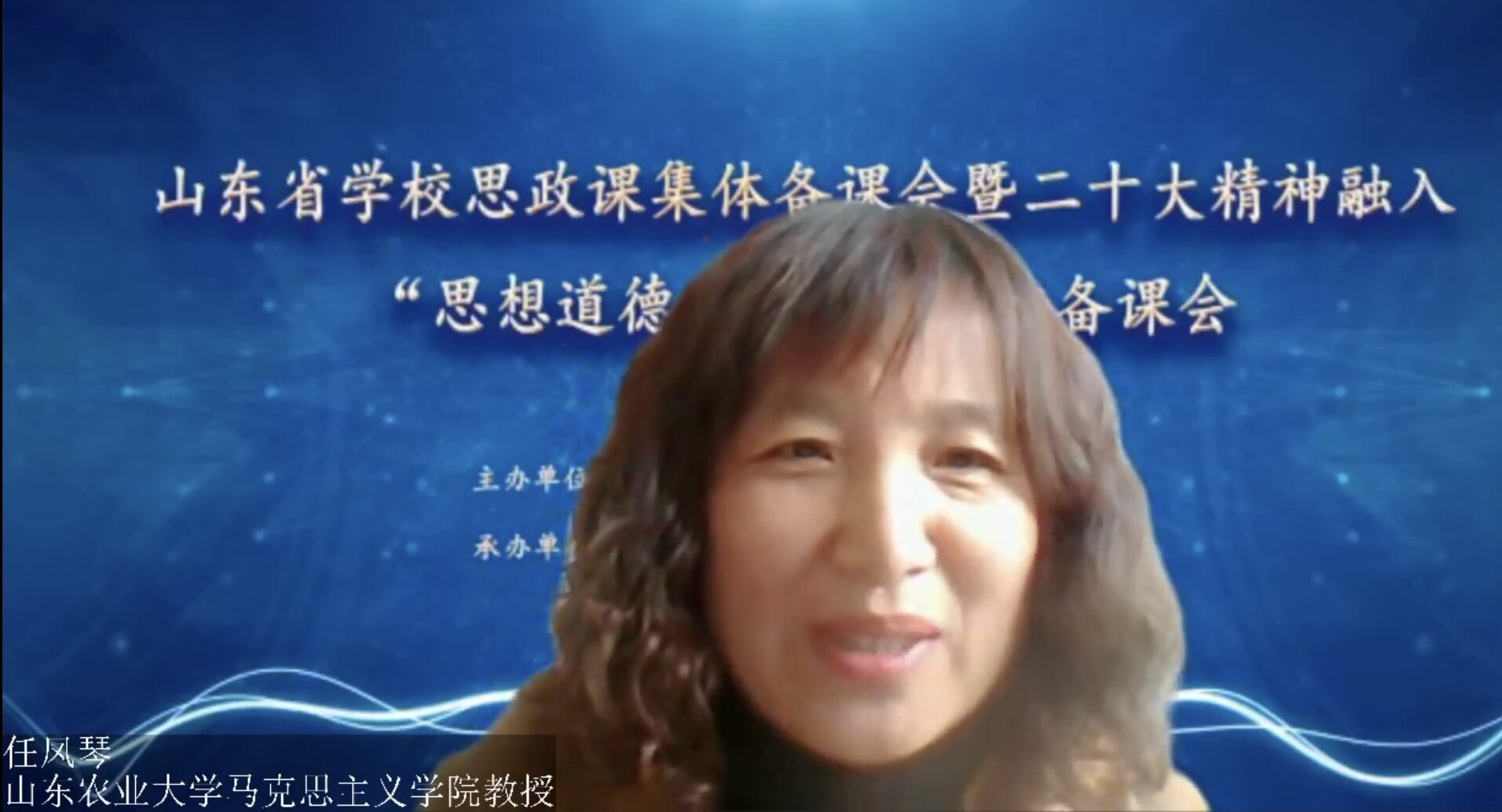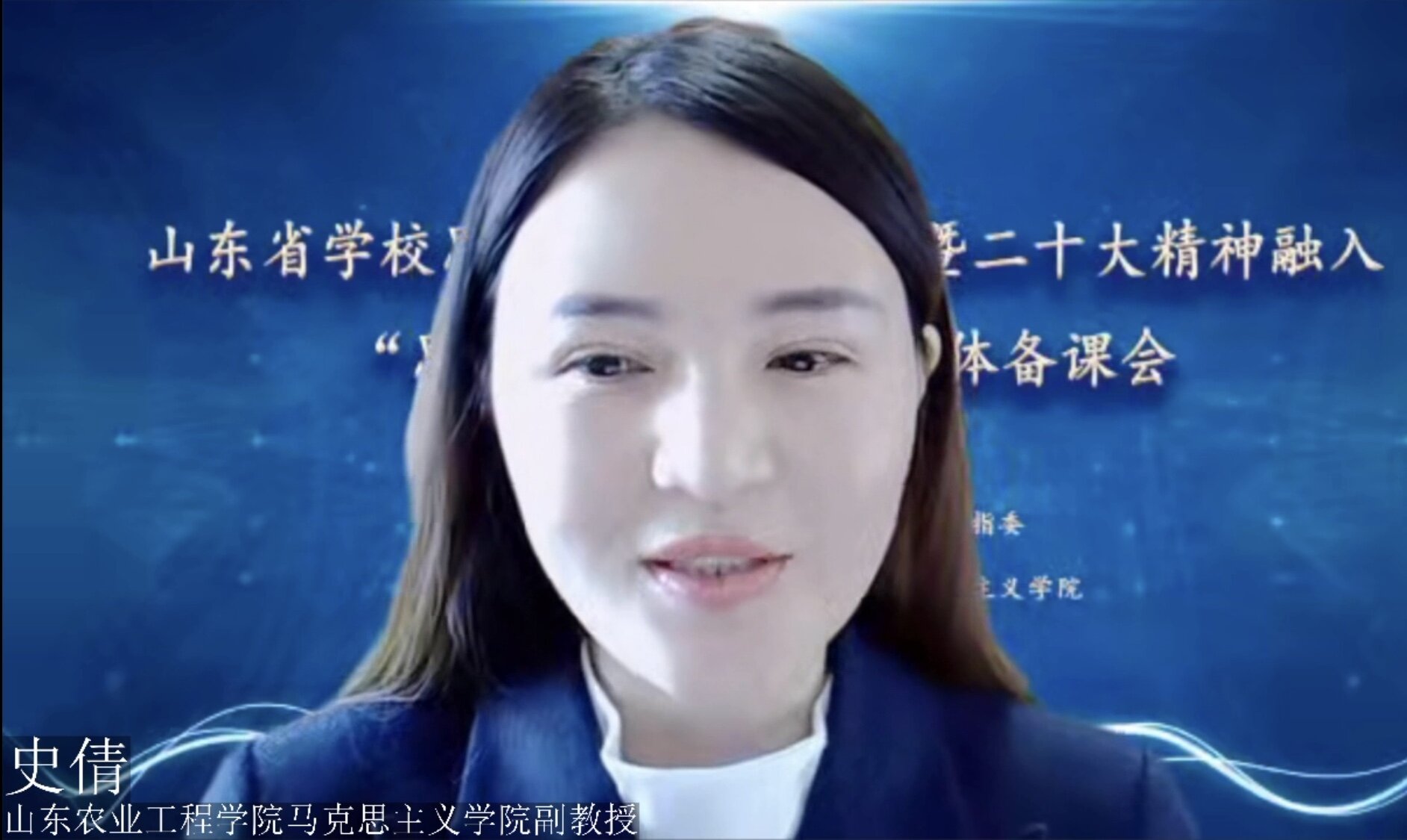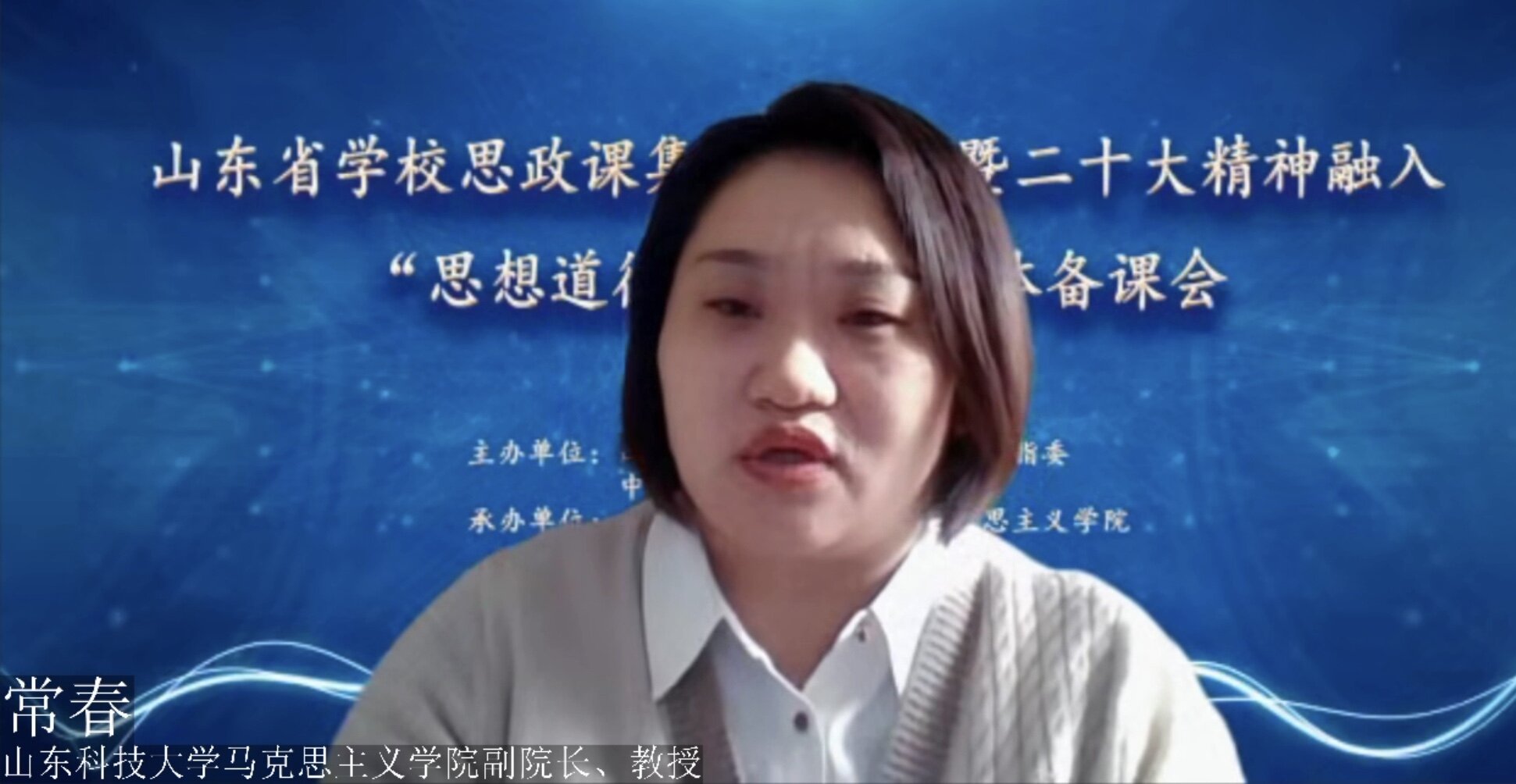 在经验分享阶段,山东农业大学任凤琴以“研精神、析要点、活课堂”三个层面对山东农业大学将党的二十大精神融入思想道德与法治课的具体做法作了介绍。山东科技大学常春从教学内容、教学方法和集体备课规范三方面就党的二十大精神融入高校“思想道德与法治”课作了经验分享。山东青年政治学院段微晓着眼本校“思想道德与法治”课程的改革实践和党的二十大精神融入课堂教学的思考进行了汇报。滨州学院傅开梅则立足指导思想、融入重点、融入过程、方式方法进行了交流。山东农业工程学院史倩以尊重和传承中华民族历史文化为例,就如何将党的二十大精神融入“思想道德与法治课程”进行分析。