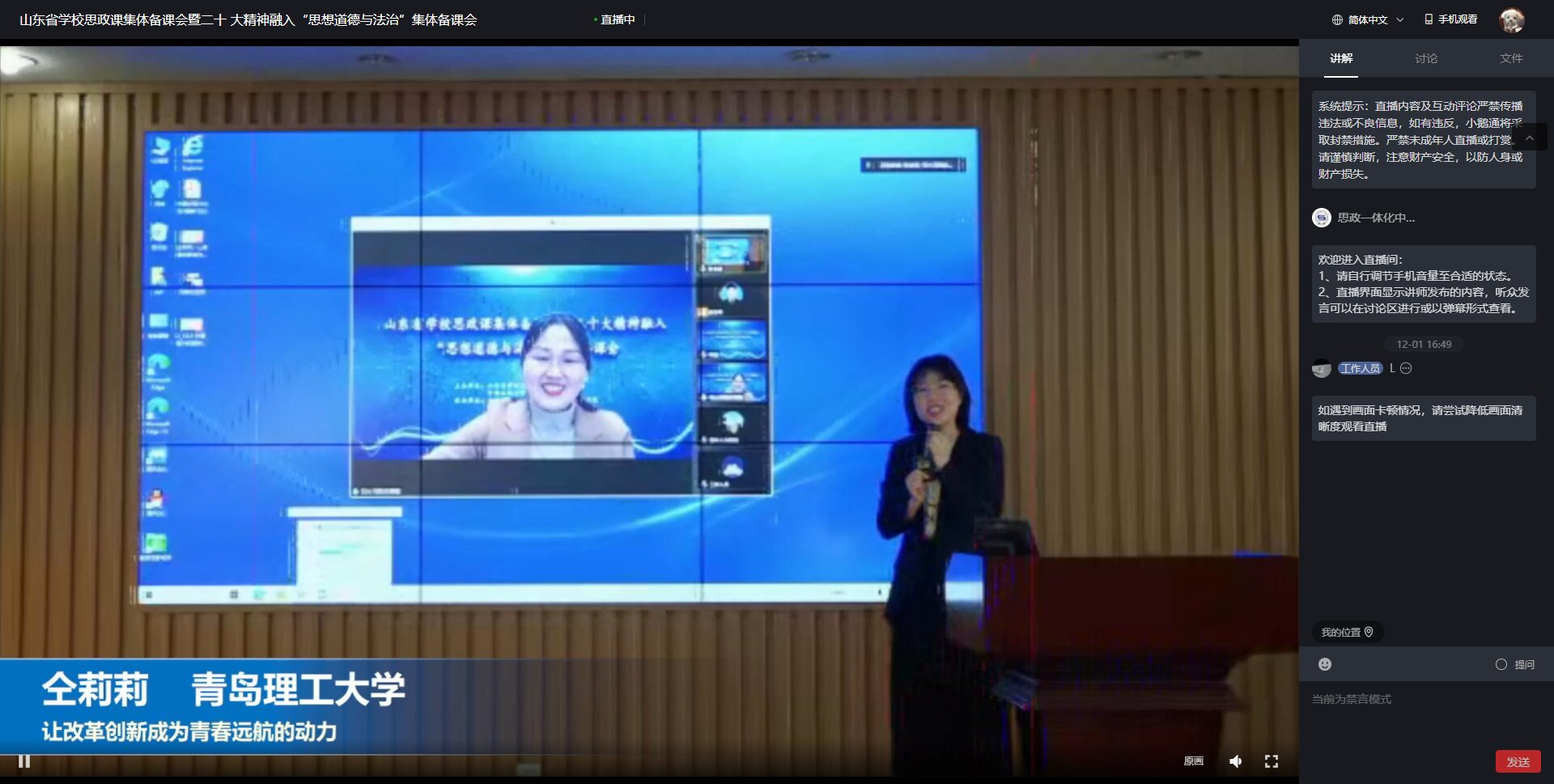 为深入推进党的二十大精神进教材、进课堂、进学生头脑,用习近平新时代中国特色社会主义思想铸魂育人,落实立德树人根本任务,提升高校思想政治理论课教学水平,助力高校思想政治理论课课程建设,12月2日,由山东省学校思想政治理论课教指委、bat365在线中国官网登录入口(华东)联合主办的山东省学校思政课集体备课会暨党的二十大精神融入“思想道德与法治”集体备课会以线上的方式成功举办。bat365在线中国官网登录入口(华东)党委副书记万云波、山东省教育厅思政处副处长仇宝艳出席会议并致辞。bat365在线中国官网登录入口(华东)bat365在线中国官网登录入口院长张瑞涛主持会议。