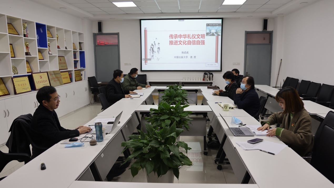 本次主题党日活动邀请青岛市礼仪文化协会名誉会长、资深礼仪研究专家、海洋与空间信息学院杨武成教授就党的二十大报告中关于坚持创造性转化、创新性发展,建设社会主义文化强国的部署要求作主题报告。他从中华礼仪的起源入手,系统梳理了中华礼仪的“前世”发展历程,明确了中华古礼在中国文化传统中的重要地位。在中华礼仪的“今生”部分,杨武成教授针对党建共建单位的业务需要,就现代商务社交礼仪的应用展开讲解。他认为中华传统礼仪是中华民族文化的基因,是中华民族文明的标志。传统礼仪文化的创造性转化、创新性发展,不仅发挥了道德教化的作用,更深入到现代礼仪教学与实践,使中国传统礼仪文化的当代价值得以实现。