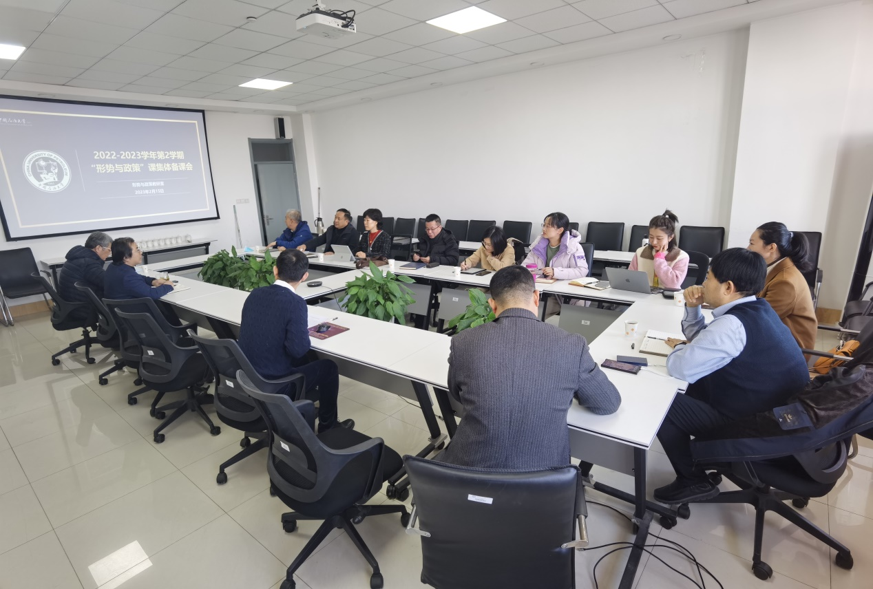 2023年2月15日下午,形势与政策教研室新学期集体备课会在文理楼459举行,全体“形势与政策”课教师参加了集体备课会。集体备课会由张瑞涛院长主持,分为两个阶段。