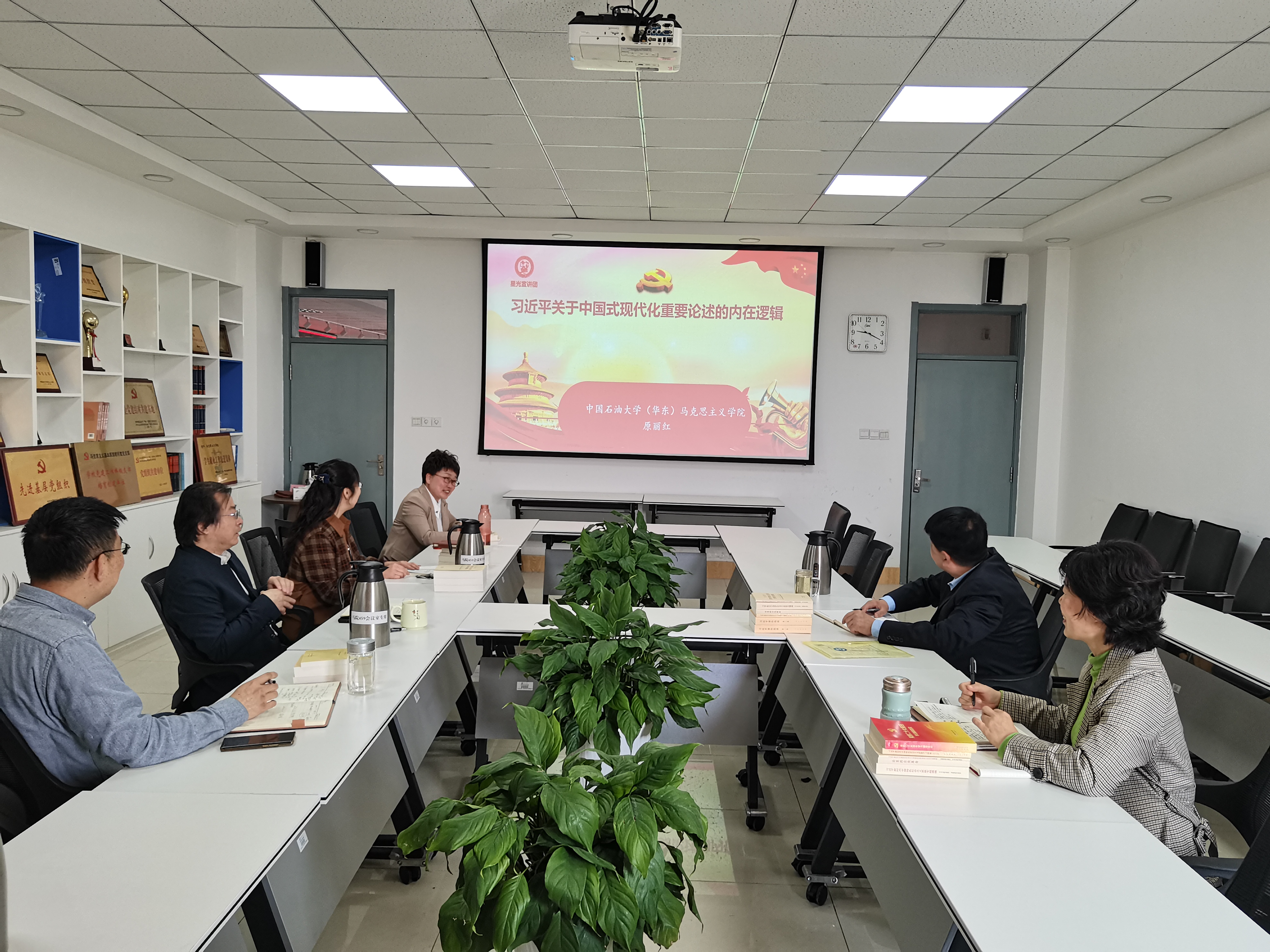 本次读书班学习主题为“习近平总书记关于调查研究的重要论述”,重点围绕《习近平关于调查研究论述摘编》《关于在全党大兴调查研究的工作方案》两个学习篇目进行学习研讨。下午,由原丽红副教授做了题为《习近平关于中国式现代化重要论述的内在逻辑》的专题辅导报告,从中国式现代化新征程的历史意义、中国式现代化新征程的政治纲领与行动指南、中国式现代化新征程应当葆有的精神状态三个方面展开,多维度介绍中国式现代化重要论述的内在逻辑。