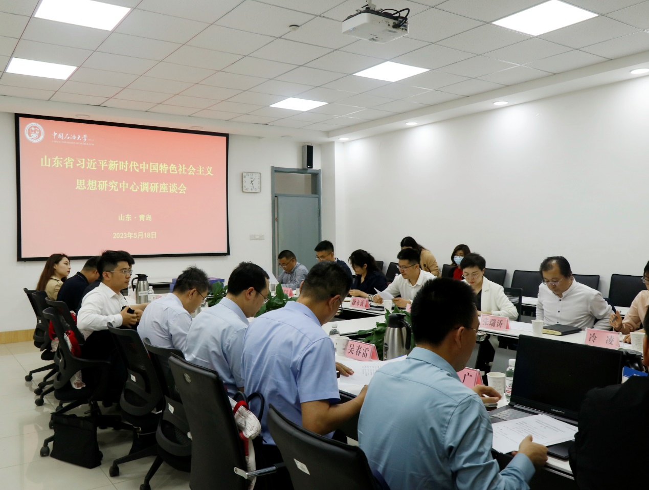 2023年5月18日下午,365官网举办山东省习近平新时代中国特色社会主义思想研究中心调研座谈交流会,会议由学校文科建设处处长金玉洁主持,山东省习近平新时代中国特色社会主义思想研究中心成员、青岛市委宣传部理论处负责人、学校相关部门负责人、bat365在线中国官网登录入口和文法学院教师代表等参加会议。
