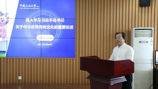张瑞涛院长以《深入学习习近平总书记关于中华优秀传统文化的重要论述》为题,结合理论溯源与现实案例,重点阐释了中华优秀传统文化的历史定位,指出中华优秀传统文化是中华民族的“根”和“魂”、是中华民族的文化基因和精神家园、是国家文化软实力的重要支撑。根据习近平总书记在文化传承发展座谈会上的讲话,张瑞涛院长强调“结合”的前提是彼此契合、结果是互相成就,“结合”筑牢了道路根基、打开了创新空间、巩固了文化主体性,并鼓励bat365在线中国官网登录入口的师生党员应具备更高的政治站位、学术水准与道德品质。