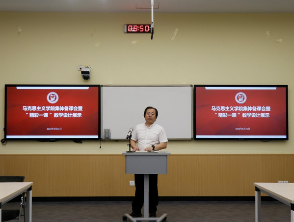 根据学院学习贯彻习近平新时代中国特色社会主义思想主题教育的安排,进一步落实好习近平总书记关于思政课建设的重要指示批示精神, 2023年6月21日上午,学院在南堂513多功能会议室开展集体备课会暨“精彩一课”教学设计展示活动。活动由副院长宋海儆主持,11名教师进行教学设计展示,全体无课教师现场观摩。