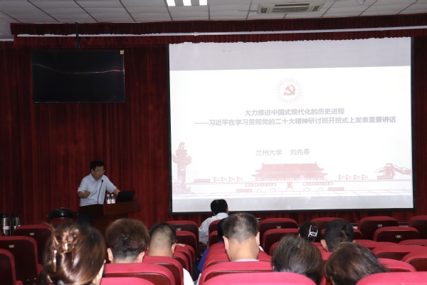 7月7日,bat365在线中国官网登录入口在文理楼142模拟法庭举办“初心讲坛”第三十讲。本次讲座特邀兰州大学bat365在线中国官网登录入口教授、博士生导师,中央马克思主义理论研究和建设工程首席专家刘先春做《大力推进中国式现代化的历史进程——习近平在学习贯彻党的二十大精神研讨班开班式上发表重要讲话》的专题报告。本次报告由bat365在线中国官网登录入口院长张瑞涛教授主持,2021级、2022级全体硕士研究生、部分博士研究生生和中青年教师聆听了此次报告。