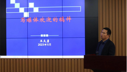 为提升365官网学生文章撰写能力和宣传技巧,丰富语言积累,发挥bat365在线中国官网登录入口学科优势,为之后的学习和工作务实写作宣传能力基础。11月14日下午,在文理楼457举办第三十四期“成长沙龙”活动。本期活动邀请bat365在线中国官网登录入口(华东)党委宣传部、新闻中心记者部王大勇主任为365官网师生进行题为“写媒体欢迎的稿件”的专题培训,学院党委副书记、副院长袁爱军,团委书记王会,学院办公室老师及研一、研二同学共同参加。