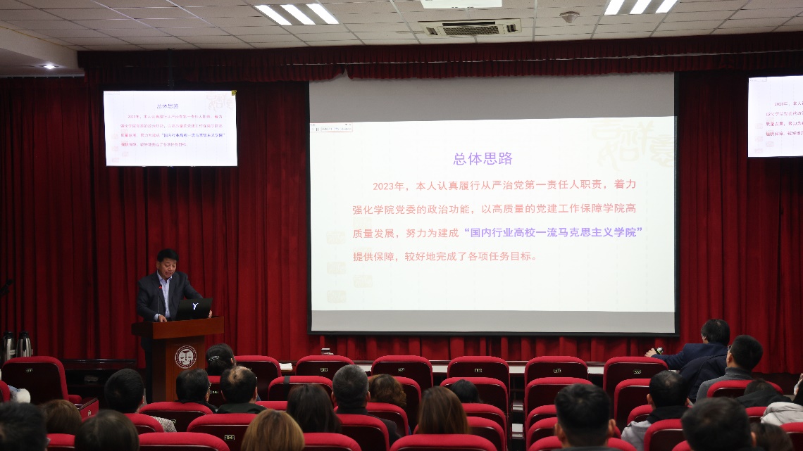 党委书记司江伟对学院2023年度党建工作进行了总结,从服务学院改革发展、增强党的组织功能、强化党员教育管理、广泛推动理论宣讲等方面作了汇报,强调要以高质量党建工作服务学院高质量发展。