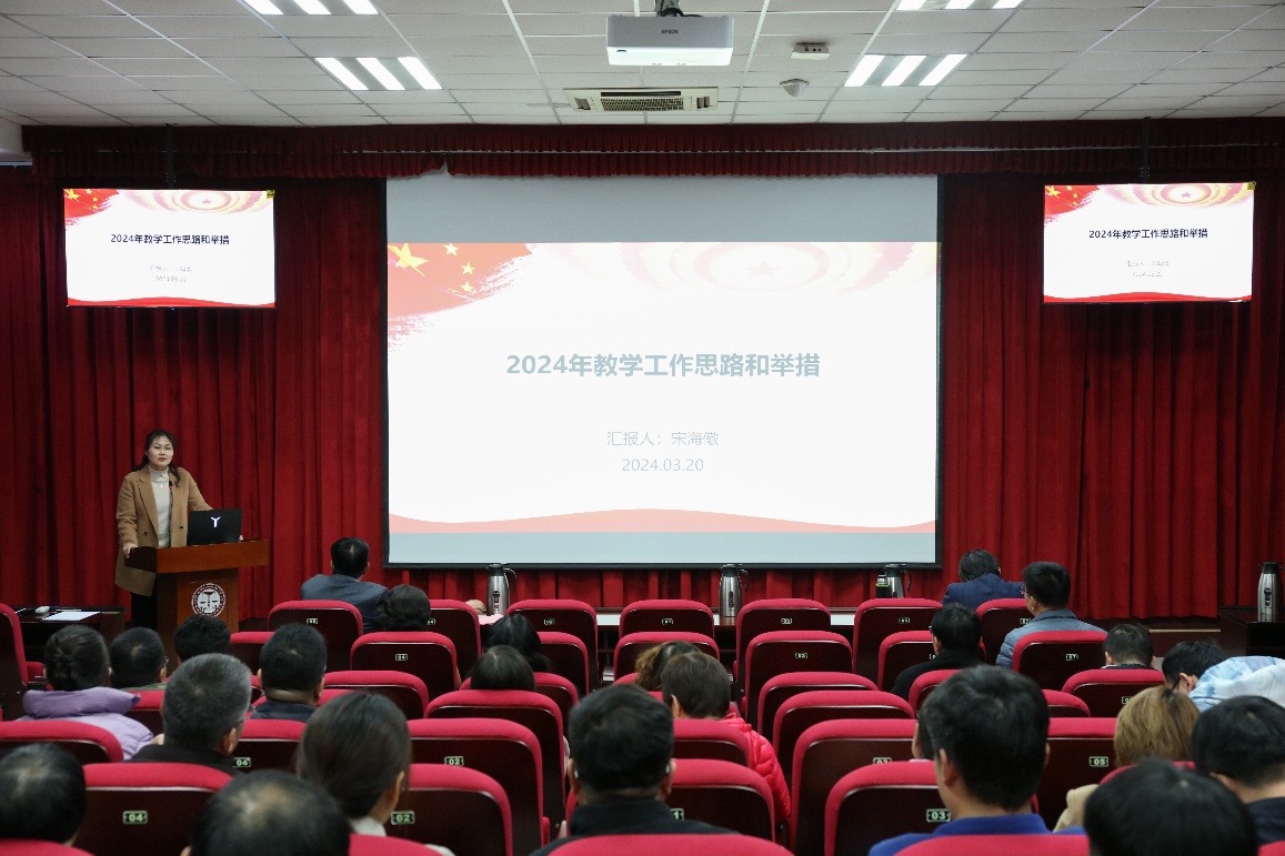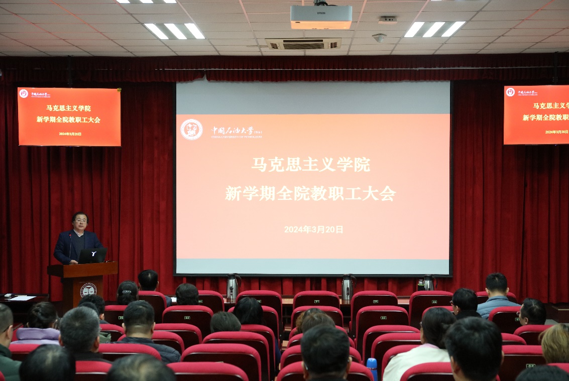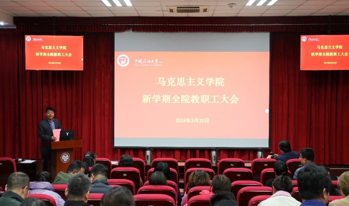 3月20日下午,学院在文理楼142召开新学期全体教职工大会,传达学校新学期工作会议精神,并安排部署本学期的工作重点。会议由党委书记司江伟主持,全体教职工参加会议。