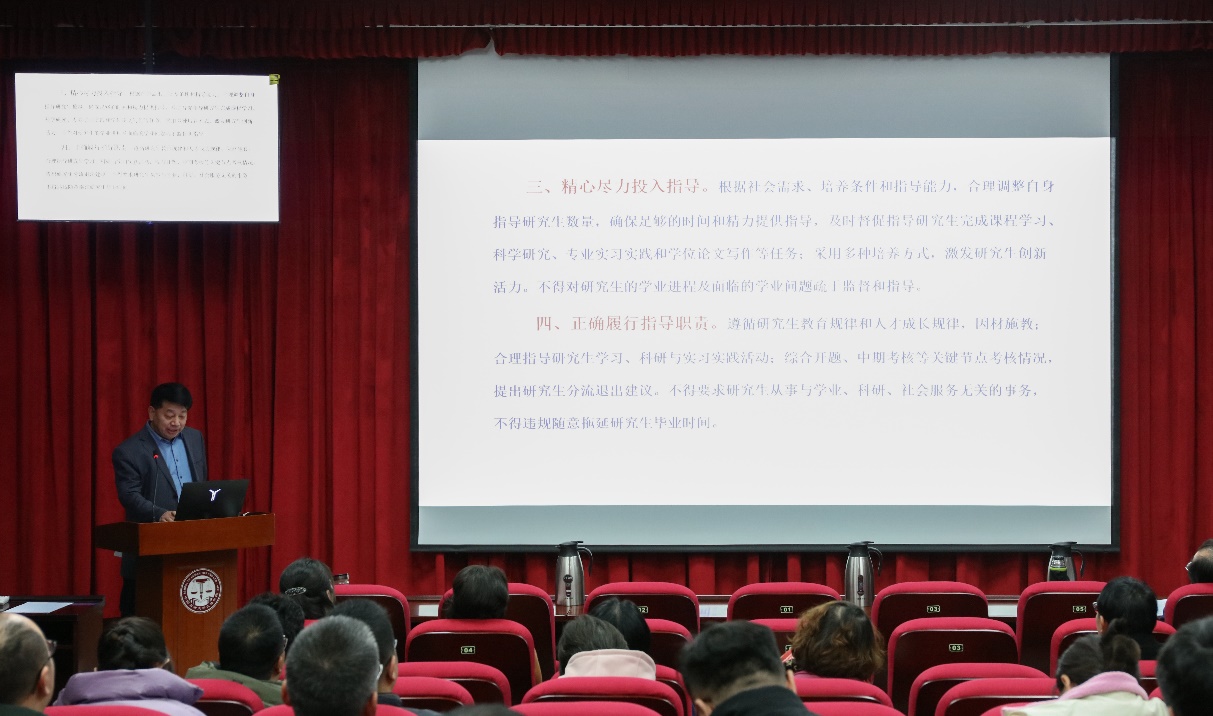 会议开始,司江伟书记与全体老师们一起学习了《新时代高校教师职业行为十项准则》《研究生导师指导行为准则》《新时代高校思想政治理论课教师行为规范和准则》三个文件。结合文件要求,司江伟书记从思想政治、教育教学、学术道德、廉洁自律和作风素养五个方面,剖析了教师师德师风可能存在的隐患和风险,并通报了近年来在国内高校发生的教师师德师风失范若干案例。